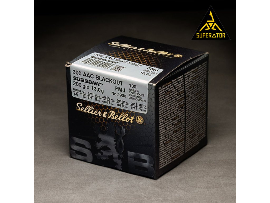 Kulový náboj 300 AAC Blackout od českého výrobce Sellier&Bellot, střela FMJ Subsonic, hmotnost 13 g / 200 gr, hromadné balení 100 ks, podzvukové střelivoKulový náboj 300 AAC Blackout od českého výrobce Sellier&Bellot, střela FMJ Subsonic, hmotnost 13 g / 200 gr, hromadné balení 100 ks, podzvukové střelivo
