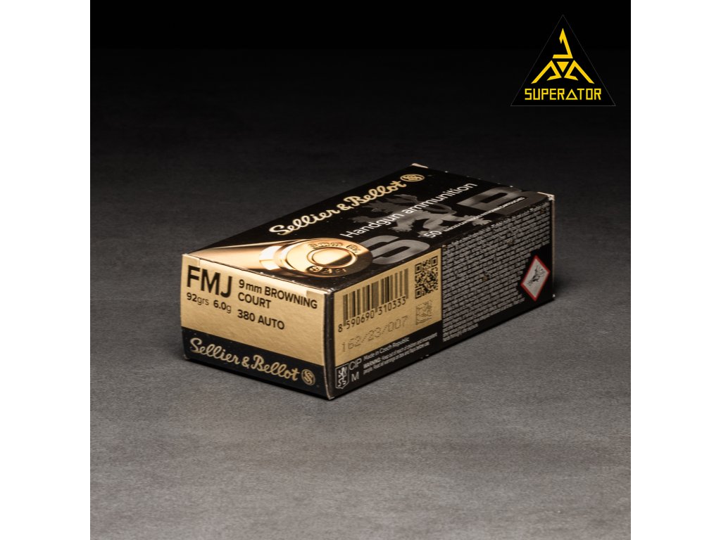 9mm BROWNING COURT 380 AUTO S&B FMJ 92 grs / 6,0 g Náboj, střelivo Sellier & Bellot