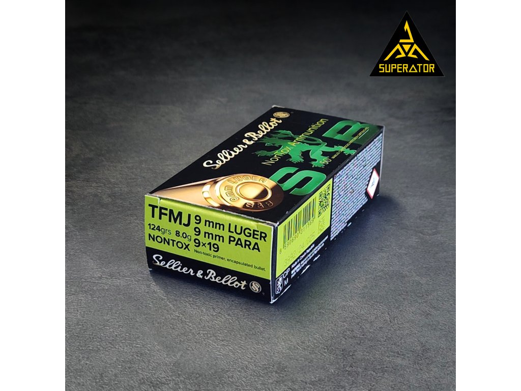 9mm Luger NONTOX S&B TFMJ 8,0g 124grs Náboj, pistolové střelivo 9x19 PARA Sellier & Bellot