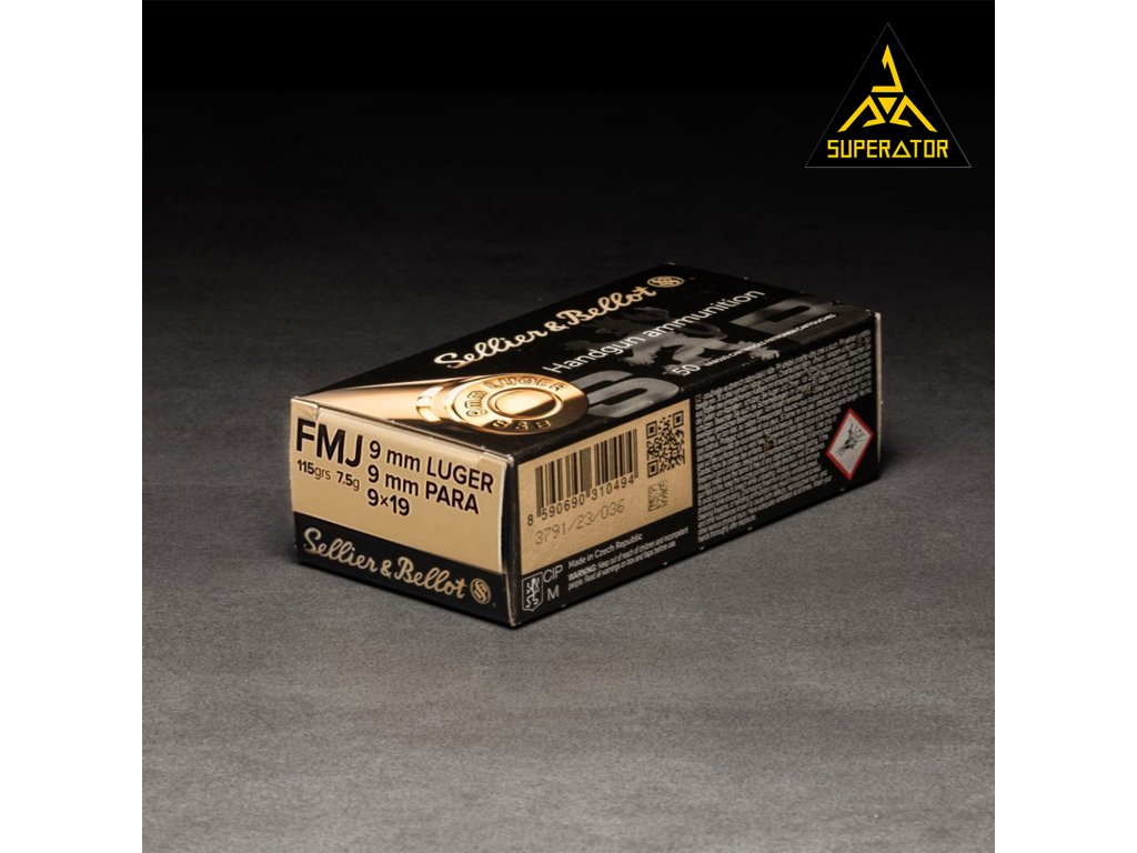 9mm Luger S&B FMJ 7,5g 115grs Náboj, pistolové střelivo Sellier & Bellot 9x19