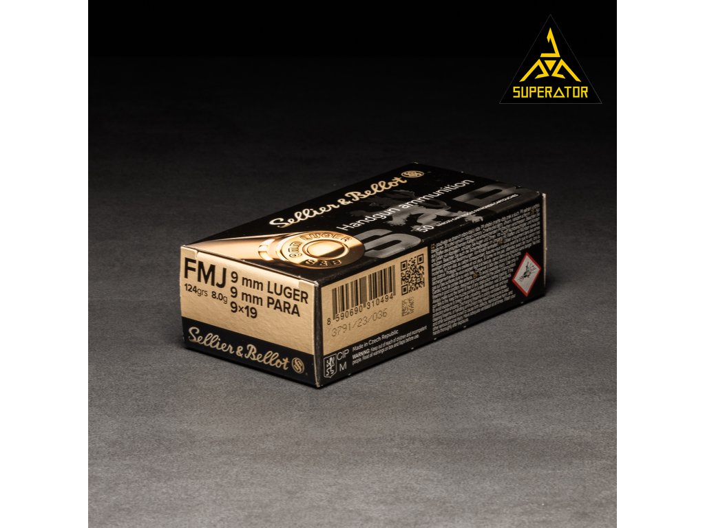 9mm Luger S&B FMJ 8,0g 124grs Náboj, pistolové střelivo Sellier & Bellot 9x19