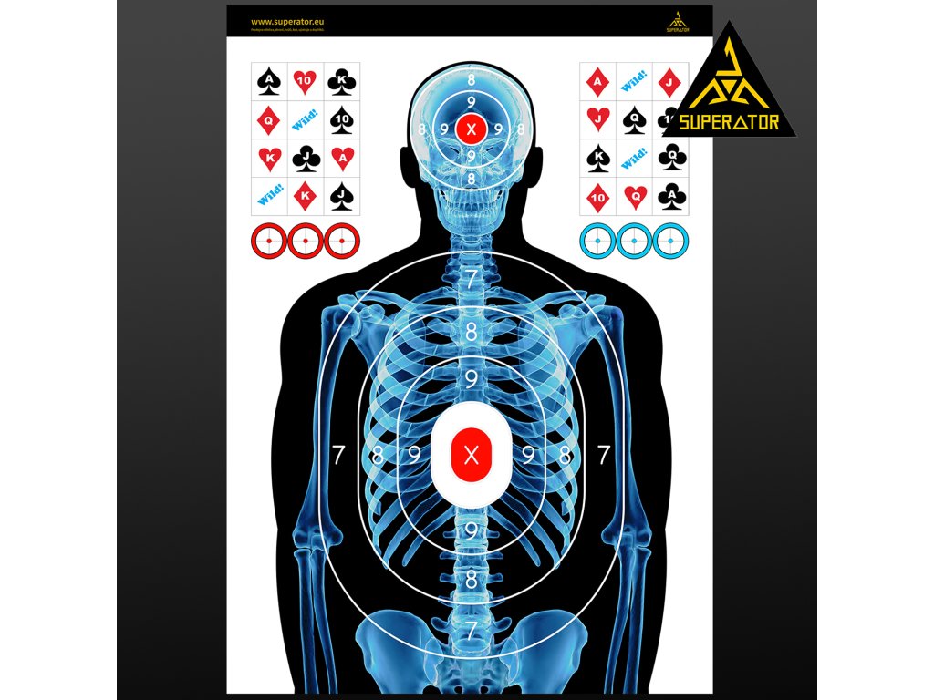 Barevný, výukový, taktický, víceúčelový terč SKELETON TARGET kus za 6,90 Kč, pistolový terč, puškový terč, 84 cm x 60 cm, silueta, X-Ray.