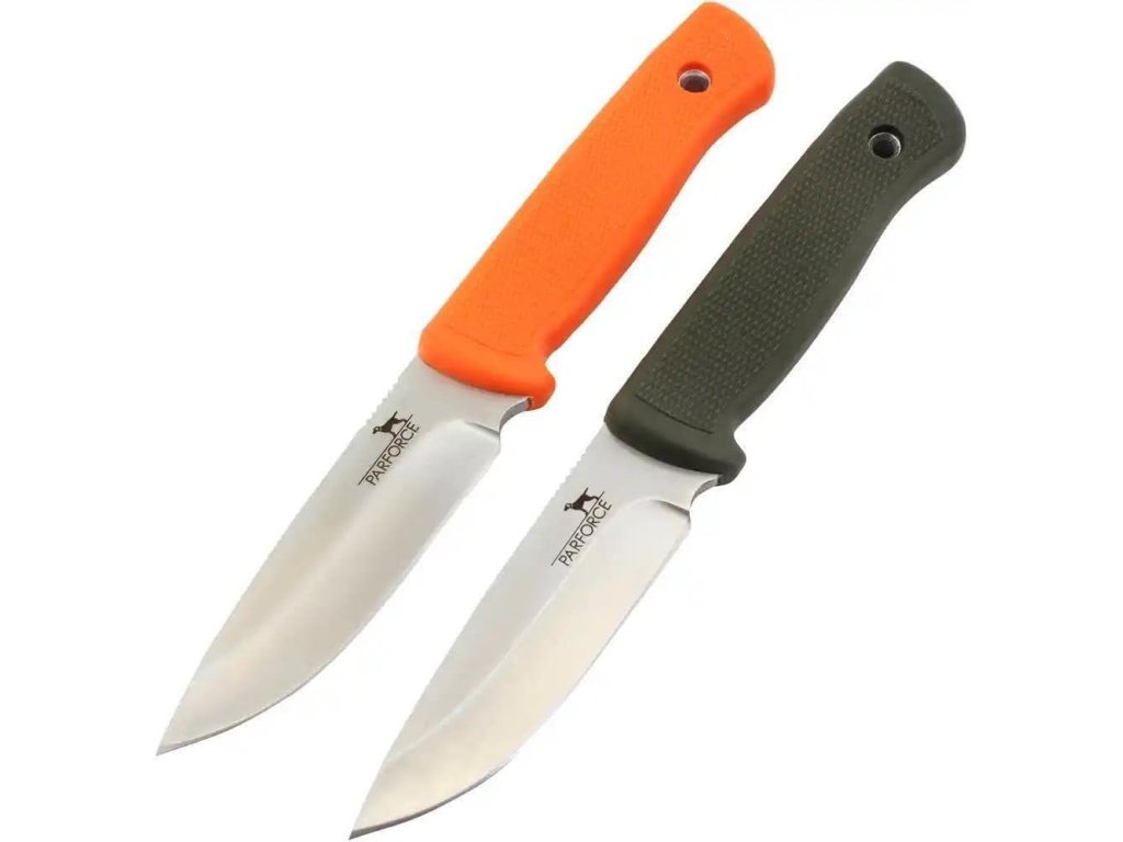 Skvělá sada nožů od PARFORCE – se dvěma loveckými noži Field Pro s olivovou a oranžovou rukojetí. Specifikace Délka čepele: 10 cm Ocel čepele: 440C (58 HRC) Tloušťka čepele: 4,5 mm materiál rukojeti: pryž Celková délka: 21,5 cm Hmotnost: 160 g každý